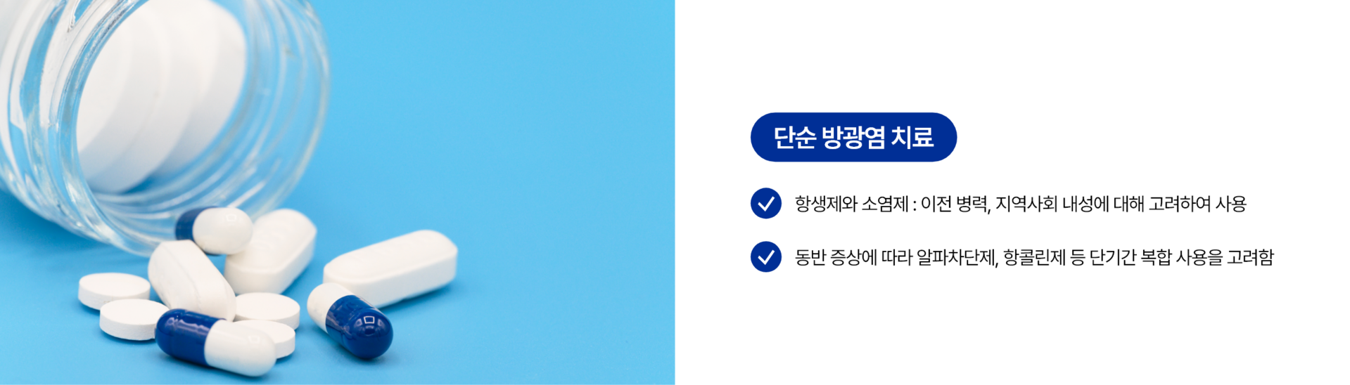 단순 방광염의 경우 항생제를 처방하여 일반적으로 72시간